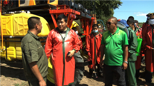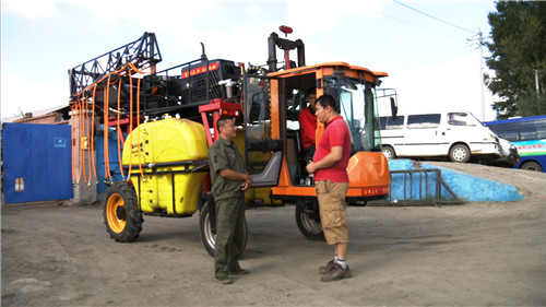 根據(jù)夏師傅的介紹,這臺噴藥機可以在高桿作物農(nóng)田里行進噴藥,它尾部的噴桿可以調(diào)整高度,高可以到達2.5米,而噴桿噴出的農(nóng)藥會形成水霧,均勻地噴灑在葉片上,達到驅(qū)逐害蟲的效果。